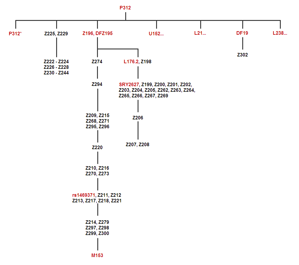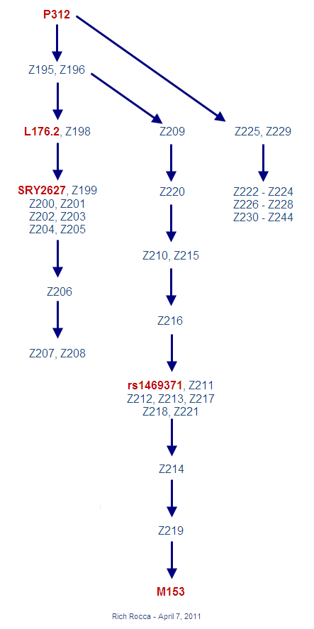 Cela n'a pas de rapport direct avec la bataille de Roncevaux mais j'aimerais expliciter la carte et l'arbre donnés par Martiko. Remarquez que la carte du post au-dessus est marquée par ceux qui l'ont faite "working draft hypothesis". R1b-P312 est l'haplogroupe chromosome Y dominant en Europe de l'ouest. Dans l'Europe du nord-ouest, il se partage avec son frère R1b-U106 (qui a un pic aux Pays Bas). Les Celtes atlantiques Ecossais, Irlandais, Gallois, Bretons sont à plus de 70% (à plus de 90% pour les lus à l'ouest) R1b-P312 et c'est son groupe fils R1b-L21 qui y est nettement prédominant. La France d'il y a quelques générations devait avoir une moyenne de 60% R1b. R1b-L21 prédominant dans le Nord ouest de la Loire à la frontière belge. R1b-U152 prédominant dans l'est de la France de la Méditerranée (Nord de la Corse inclus) jusqu'à la frontière allemande et les Luxembourg. R1b-SR2627 (fils de R1b-P176.2 et arrière petit-fils de R1b-P312 ) nombreux dans le sud-ouest de la France de 5 à 20% comme en Catalogne (plus de 10%) avec une pointe à 25% dans le Val d'Aran, mais la population espagnole comme celle de tous les pays européens non francophones (La Chine et L'Inde et beaucoup d'autres pays ) sont de mieux en mieux connus contrairement à la France réfractaire au progrès. P153 est presque exclusif au Pays Basque. Il est maintenant au bout d'une branche qui compte beaucoup de mutations intermédiaires qui forment des noeuds généalogiques (lignée agnatique ou mâle) dans l'arbre des mutations qui servent de marqueurs. Le Pays basque a de l'ordre de 90% de R1b-P312, du même ordre que les celtes atlantiques, mais dans des branches différentes issues de R1b-P312. Sur l'arbre, vous remarquerez que de nombreux marqueurs commençant par Z, ils ont été découverts cette année 2011 et il s'en découvre tous les jours dans les différents haplogroupes de l'espèce humaine. L21, U152 sont aussi à la racine d'arbres avec des nouveaux marqueurs Z. Cette trés rapide avancée est du au projet 1000 génomes qui veut fournir la carte génétique compléte de 1000 humains mâles. Cette carte n'est qu'une succession de plusieurs milliards d'élèménts ou paire de bases, chacun codé de 4 lettres A, C, G et ? (initiale des 4 nucléotides fondamentaux de l'ADN. Mais elle est exploitée par des amateurs (sur le forum DNA Forums) au moyen d'outils informatiques puissants et ils déterminent les éléments mutants sur le chromosome Y (30 millions d'éléments) à prendre en compte sur le Y, qui sont noeuds pour l'arbre généalogique. Ces marqueurs sont vérifiès par les universitaires américains qui travaillent avec les compagnies commerciales de tests génétiques et ensuite incorporés dans le catalogue de tests de marqueurs des compagnies. Il y a beaucoup d'effort pour dater les différentes mutations et les placer sur une carte géographiques, donc situer l'origine du sub-clade repéré oar ce marqueur, mais il y encore beaucoup de désaccords chez les professionnels et, les amateurs quoique beaucoup prétendent connaitre la VERITE. J'en connais un qui sévit sur ce forum, assez confus mais très sur de lui.