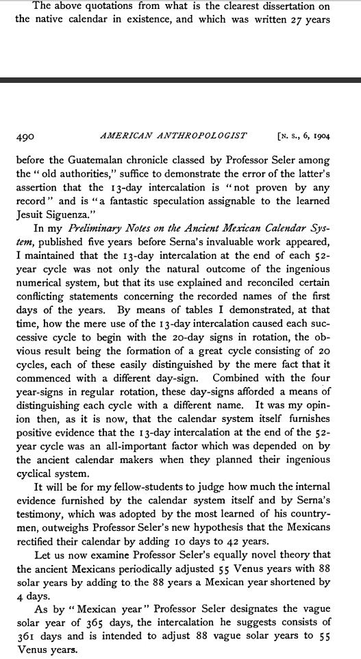 Je suis content, j'ai retrouvé mon document pdf qui en parlait : ce que tu dis là est basé sur les travaux de Zelia Nuttall. La publication, que j'ai retrouvé, qui en parle est The Periodical Adjustments of the Ancient Mexican Calendar (American Anthropologist, New Series, Vol. 6, No. 4, Jul. - Sep., 1904). Voici les pages que j'ai mis en ligne concernant cette publication : https://upload.alloforum.com/22/0R83DFIC https://upload.alloforum.com/22/7WWXF0HX https://upload.alloforum.com/22/EIY7WISJ https://upload.alloforum.com/22/EAN630NZ https://upload.alloforum.com/22/UPBS7AVO https://upload.alloforum.com/22/QKNAPLXR https://upload.alloforum.com/22/G7EFE3YM https://upload.alloforum.com/22/AWEFU9WY https://upload.alloforum.com/22/2YW3BWZ1 https://upload.alloforum.com/22/V6M0JVT6 https://upload.alloforum.com/22/H2TIRM25 11 fichiers à lire, malheureusement en anglais. Normalement, ça répond aux questions de Tayaqun et de Ourob.