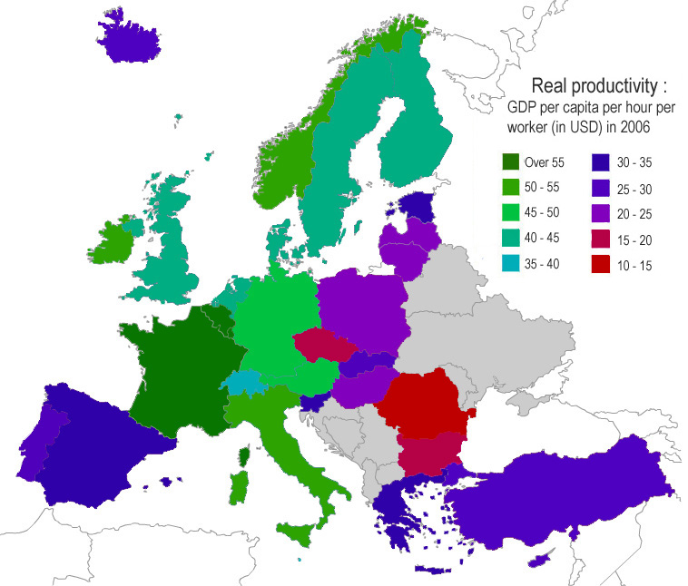 | Il y a en effet plusieurs années que les français sont reconnus comme un des peuples les plus productifs. De la même façon que je scande depuis des décennies qu'il faut s'occuper des revenus et non des salaires, je m'échine à hurler qu'il faut mesurer non pas le temps de travail mais la productivité. Enfin, dans ma future ex boite, l'idée à fait son chemin. Le temps de travail UTILE commence à être mesuré. Lorsque nous en serons là au niveau national, nous verrons que les français qui travaillent travaillent beaucoup et de façon très efficace, à la limite de la torture, le tout pour entretenir tout une série de parasites allant des milliardaires aux irréguliers, en passant par les politiques. Le travail des fonctionnaires et assimilés sera enfin reconnu à sa juste valeur. Mais ne rêvons pas...
