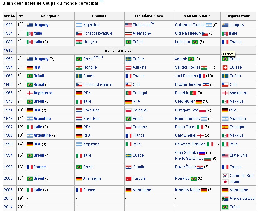 | | Normalement le gagnant est toujours un pays se situant sur le même continent que le pays organisateur. C'est du moins ce qu'on aurait observé, parrait-il. |