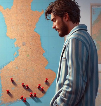 | Le 07 Avril : Je vais me coucher à 22H45... Je fais des mouvements oculaires pour imitant ceux qui ont lieu dans le sommeil REM afin de voir si je peux induire un endormissement directement en sommeil REM (c'est à dire induire du SOREM) ce qui pourrait faciliter un WILD... ... Et ça déclanche une myoclonie d'endormissement (sursaut soudain alors que je m'endormais). Il est 22H50. Je refais des mouvements oculaires... ... et ça déclenche une nouvelle myoclonie mais dans mes incisives de la machoire supéieure (je ne savais pas que ça pouvait exister). Il est 22H55 Je refais des mouvements oculaires... ... et ça déclenche une HH... HH1 : Je réfléchis à deux rêves que je crois avoir fait. Il est 23H00. Je refais des mouvements oculaires... ... et ça déclenche une HH... HH2 : Je souligne un mot dans mon carnet de rêves. J'entends un homme qui crie : "Floute, foutess !" Il est 23H10. Je somnole quelques temps... Puis je refais des mouvements oculaires... ... et ça déclenche une HH... HH3 : Je parle à quelqu'un d'un rêve que j'ai fait et qui se passait en Iran. Il est 00H15. Je refais des mouvements oculaires... ... et ça déclenche une HH... HH4 : Je dis à quelqu'un d'aller chercher mon échelle pour l'utiliser dans mon rêve "pour ne pas prendre de risques !" Il est 00H25. Je refais des mouvements oculaires... ... et ça déclenche une HH... HH5 : Quelqu'un me dit : "Peut-être serais-tu lucide dans un rêve si tu faisais attention à ton xxxxx 52 !" Il est 00H30. Je refais des mouvements oculaires... ... et ça déclenche une HH... HH6 : Quelqu'un me dit que si je veux être lucide dans un rêve je dois d'abord faire un "test d'endormissement". Il est 00H50. Je refais des mouvements oculaires... ... et ça déclenche une HH... HH7 : Je vois un homme dans un petit bateau. Une voix dit : "Pour faire un rêve lucide il faut... MA MERE !" Il est 00H55. Je refais des mouvements oculaires... ... et ça déclenche une HH... HH8 : Une voix dit : "Cette fois c'est l'état qui gère l'endormissement !" Il est 1H00. Je refais des mouvements oculaires... ... et ça déclenche une HH... HH9 : Une voix dit : "Ainsi c'est moins calme pour le public !" Il est1H05. Je refais des mouvements oculaires... ... et ça déclenche une HH... HH10 : Sur un bateau, parmi d'autres marins, je vois un homme torse nu, musclé, avec un visage assez carré?. Il me semble que c'est un Polynésien. Je voudrais lui téléphoner dans le monde réel (je dais donc que je suis dans une HH) mais je n'ai pas son numéro. ... et je m'endors sans lucidité... R1 : Dans un port antique ou médiéval des marins sont sur un bateau. Ils discutent entre eux au sujet d'un autre homme. Je me réveille. Il est 3H00 Je me rendors... R2 : A ma droite je vois mon ex qui essaie de scier une planche en utilisant un appareil permettant les découpes obliques (j'ai oublié le nom de cet appareil). Le modèle qu'elle. utilise est nouveau : Il est constitué d'une plaque carrée avec quatre rebords épais munis de fentes et qui sont règlables. J'ai bien envie de m'en acheter un... mais plus grand et plus cher car le sien me semble ne pas tellement marcher. Ou alors c'est elle qui ne sait pas s'en servir. (...) R3 : Je suis dans un bus. Un jeune homme aux yeux clairs et aux cheveux châtains Blonds demande au chauffeur si ce bus passe bien par l'arrêt Xxxxxx. Le chauffeur ne connait pas d'arrêt de ce nom sur son parcours. Je comprends que le jeune homme s'est trompé de bus. Je veux l'aider à trouver à quel arrêt il doit descendre pour trouver une correspondance allant vers sa destination. Je vais vers la porte centrale du bus où, sur un panneau, sont affichés les horaires et les noms des arrêts des différentes lignes. Daux femmes, une jeune et une vieille bavardent devant le panneau et je leurs demande de s'écarter car "c'est une question de vie ou de mort". Je cherche alors les horaires des lignes 15 et 45 car je pense que ce sont celle-là qui se dirigent vers la destination du jeune homme. Mais je ne les trouve pas. Ca doit être parce que ce sont deux lignes spéciales qui sont perpendiculaires aux autres. Pourtant je me souviens que j'avais écrit à la main les horaires de ces deux lignes sur deux feuilles que j'avais punaisées sur ce panneau. Ou sont-elles passées ?... J'en retrouve une sur le sol où elle était tombée. Je la ramasse et la coince derrière une autre fiche horaire car je n'ai plus de punaises sur moi. Mais ce sont les horaires de la ligne 15 et je me rends compte que ce sont ceux de la 45 qu'il me faut... (... Ellipse...) ... J'ai retrouvé la fiche de la ligne 45. et je la. regarde. Mais je n'arrive pas à la lire : Les lettres semblent floues et mouvantes. Je suis de plus en plus fébrile et je commence à m'énerver. Je n'avais que 30 minutes pour trouver le bon arrêt avant qu'on l'ait dépassé et voilà que la moitié du temps est déja dépassée. Si ça continue je devrai utiliser mes super-pouvoirs pour transporter le jeune homme à sa destination. Et j'aurais bien voulu éviter de les employer devant les passagers du bus... Mais pourquoi est-ce que je dispose de ces super-pouvoirs ? Est-ce parce que je suis un super-héros ?... Ou alors parce que je suis un rêveur lucide ?... Mon rêve commence alors à fluctuer comme s'il voulait m'empêcher de devenir lucide. Je passe probablement en sommeil lent et tout devient confus. Je me trouve dans le chaos et j'essaie de remettre de l'ordre dans mes idées... Pourquoi le jeune homme veut se rendre à cet arrêt ? Parce que c'est là que se trouve la maternité où sa compagne est en train d'accoucher... Et qu'en est-il des bus 15 et 45 ? Ce ne sont pas deux bus mais les deux bébés dont sa compagne vient d'accoucher...Il est donc devenu papa ? Non, c'est MOI qui suis devenu papa... Je semble revenir en sommeil REM mais je ne sais pas si je suis toujours dans le décor du bus ou dans un autre car je me focalise sur mes pensées... Me vo