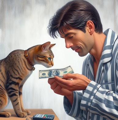 | Le 13 Avril : Je vais me coucher à 22H35 et je m'endors rapidement... R1 : On me montre un site de sex-shop en ligne sur Internet et on me demande de calculer combien d'euros par mois je pourrai dépenser en y achetant des choses. Je réponds que je ne peux pas calculer la dépense car il n'y a pas que ce site qui existe. Il y a aussi le Monsieur de la rue Xxxxxx et la Dame de la rue Zzzzz chez qui j'achète des trucs. Je me réveille. Il est 00H15. Je me rendors... R2 : Je viens de gagner une somme d'argent je ne sais plus comment. Je sors de chez moi et je vais chez ma grand-mêre. Je tiens dans ma main une petite brosse de fer avec laquelle je joue durant le trajet (probablement le souvenir de la brosse de fer que j'ai utilisé hier IRL pour enlever la mousse sur le sol devant chez moi). J'entre chez ma grand-mère et vois que ma mère est là. Elle a un petit appareil au cou qui fait "bip-bip !' à mon approche. Je lui dis : "Ha, tu veux des sous, toi !". L'infirmière qui s'occupe de ma grand-mère arrive. Elle aussi a un appareil qui fait "bip-bip !" alors je dis : "Elle aussi elle veut des sous ?". Ma chatte Bistouille arrive. Elle aussi fait "bip-bip !". Je lui dis : "Toi aussi tu veux des sous ?" et je lui tends un billet de banque. ma mère me dit : "Ne fais pas l'idiot et donne-lui quelque chose à manger !". Alors je lui donne ma brosse métallique qui s'est transformée entretemps en une sorte de hambourger. Je me réveille. Il est 3H25.` HH1 : J'essaie de me souvenir comment j'avais gagné de l'argent au début du rêve précédent. Des gens viennent m'entourer et me réclament de l'argent et je leurs en donne. Il est 3H40. HH2 : Je suis assailli par des créanciers et je leurs donne de l'argent... J'ai oublié la suite. Je me rends compte que je n'(ai pas mémorisé la fin de la HH alors j'y retourne (c'(est un MUO de HH !)... HH3 : ... Ce n'est plus la même HH. Je me trouve dans ma cuisine et je vois que ma chatte Catoune est dans le jardin. Alors je lui ouvre la porte et elle rentre. Il est 3H45. HH4 : ... Je suis dans ma cuisine et j'essaie de me souvenir comment a commencé cette HH.Une femme arrive et je lui donne de l'argent. Il est 3H53. Je tente un WILD en me visualisant en train de voler... Mais ça induit une HH sans aucun rapport... HH5 : Je suis encore en train de donner de l'argent à des gens . Il et 4H00. Je tente à nouveau un WILD en me visualisant en train de voler avec un appareil contrôleur de lucidité... Mais ça induit encore une HH sans aucun rapport... HH6 : Je suis face à des gens impatients (peut-être veulent-ils encore des sous ?). Je les quitte et entre dans une pièce située à droite. Je suis content car je vois que je suis parvenu à y faire pousser une plante (IRL j'ai justement semé des fleurs il y a deux jours). Je suis content également car je n'ai donné d'argent à personne dans cette HH. Il est 4H07. Je me rendors... R3 (RL) : Je suis, apparemment, revenu à l'armée. Je viens d'effectuer une ronde avec un berger allemand et je retourne au poste de garde (Souvenir de mon service militaire IRL en tant que commando). J'entre et vois que mon ex' est là. Elle me fait remarquer que c'est déjà le soir et que, selon les instructions, je dois donc fermer la porte à clé derrière moi. Je tends la main pour prendre le trousseau de clés qui doit se trouver accroché à un clou au mur... mais il n'est plus là. Mon ex', inquiète, me dit : "Il n'est pas là ?". Je regarde dans ma poche... mais il n'est pas dedans. Mon ex' fouille partout. Il faut retrouver ces clés sinon on va avoir des ennuis ! Je commence à m'inquiéter... mais soudain je me détends et je dis d'un ton nonchalant : "On est dans un rêve, donc ce n'est pas grave !". Je claque des doigts et la porte se verrouille toute seule. C'est pratique. Mon ex' continue toutefois à rechercher les clés... Et ell finit par les retrouver : Elles étaient dans sa poche. Elle est soulagée et moi je ris. Machinalement je mets moi aussi la main dans ma poche. Et je me rends compte que je porte un petit chandail gris-bleu pâle boutonné avec des poches très petites : Elle ne font que 2cm de profondeurs environ.Je me dis que si les clés avaient été dedans alors je les aurais certainement perdue... Et je me réveille. Il est 5H35. Note : Mes rêves étaient obsédés par l'argent cette nuit !