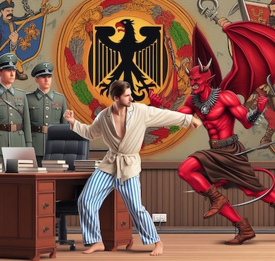 | Le 29 Mars : Je vais me coucher à 22H30 et je m'endors vite... R1 : Une dictature s'est installée en France. Regarder les jeux olympiques à la TV ou sur Internet est désormais interdit./ Toute la population doit se rendre dans la ville d'à-côté pour suivre les épreuves sur un écran géant qui y a été installé. Tous sont obligés d'y aller même ceux que ça n'intéresse pas. Moi, justement, ça ne m'intéresse pas. Mais si la loi m'oblige à y aller elle ne m'oblige pas à y rester. Je reviens donc chez moi. A pieds car c'est le soir et il n'y a donc plus de bus. Toutes les rues sont désertes car tout le monde est allé devant le grand écran. Je me dis que les cambrioleurs doivent s'en donner à coeur joie. Mais voilà que trois (ou quatre ?) hommes me barrent la route. Ce sont des voleurs qui veulent me détrousser. Comme je suis hypnotiseur je sais comment me débarrasser d'eux. Je leurs dit que je suis un grand sorcier et que s'ils ne me laissent pas passer je vais me transformer en monstre et les dévorer. Je commence à enfiler ma robe de chambre rouge en prétendant que celle-ci est magique et que c'est elle qui me permet de me transformer. En même temps je lers hypnotiser et leurs fais des suggestions hypnotiques. je leurs dis : "Vous voyez comme je me transforme ? je me transforme ! Je me transfooorme ! Vous avez peur ! Vous avez peeeur ? Ils sont tellement paralysés par la peur, me croyant changé en monstre, qu'ils me laissent partir... Je continue de marcher dans la rue en direction de ma maison en réfléchissant.Je me dis que je pourrai utiliser mes pouvoirs hypnotiques pour me faire de l'argent. Je pourrai réaliser des vidéos que je vendrai. Des vidéos permettant aux personnes insomniaques de s'endormir. Au début dela vidéo on me verrait faire des suggestions hypnotiques pour faire s'endormir les gens. Mais que pourrait-il; y avoir surtout le reste du film ? Ce serait bête de le laisser vide car les gens pourraient croire que leur lecteur ne marche plus. Je pourrai mettre un petit "bip" toutes les minutes pour indiquer que la vidéo continue de tourner.... Bizarrement je ne suis plus en train de me diriger vers ma maison mais je marche dans le sens inverse. Devant moi, sur le trottoir, je vois une masse de débris végétaux. Je reconnais une plante qui se colle aux vêtements alors je fais un écart pour l'éviter. Puis je continue ma route... Et j'ai oublié la suite... Je me réveille. Il est 4H10. Je fais quelques balayages oculaires. Mais je n'arrive pas à m'endormir... ... A 5H30 je ne dors toujours pas... ... J'arrive enfin à me rendormir, je ne sais pas à quelle heure... R2 : Je regarde une photo représentant des cow-boys.... Je ne me souviens plus de la suite... Il me semble que je devais m'arranger pour faire passer une chose avant une autre... Je fais un micro-réveil. Et je me rendors tout de suite, ce qui m'empêche de bien mémoriser la fin du rêve précédent... R3 : Je remarque la présence d'une rallonge accrochée au mur au-dessus de la porte de ma chambre. Et je vois aussi, à côté de mon lit, un trou dans le mur par lequel passe une autre rallonge. Ce doit être ce qui reste de mon ancienne installation électrique pour faire fonctionner mon ancien modem. J'avais oublié de tout désinstaller. Je me réveille. Il est 6H40. Note : J'ai bien reconnu ma robe de chambre rouge. par contre il n'y a jamais eu de trou dans le mur dans mon ancienne installation électrique.