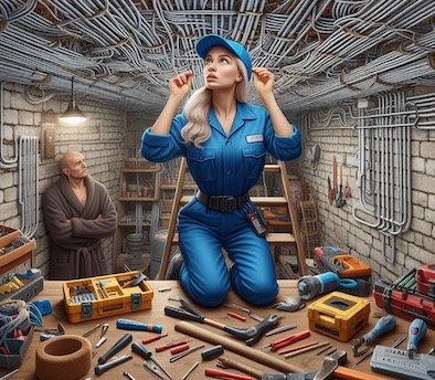 | Le 02 Avril : Je vais me coucher à 22H35 et je m'endors vite ... R1 : Rêve oublié... (...) R2 : Une femme blonde portant une casquette et un bleu de travail est en train d'installer une sorte de système de climatisation dans mon garage. Elle veut projeter un jet de vapeur humide vers le plafond pour effectuer un test et m'en demande l'autorisation. Je refuse car le plafond est recouvert par des dalles de polystyrène servant à l'isolation thermique. Et je crains que la vapeur se s'insinue entre les dalles et provoque de la moisissure qui, avec le temps, décollera celles-ci du plafond. La femme regarde ensuite les nombreux cables électriques qui s'entrecroisent au plafond car elle voudrait y brancher une dérivation pour alimenter son système de climatisation. Elle me montre un cable gris et me demande s'il sert pour alimenter l'éclairage. Je réponds que je n'en sais rien car les cables sont trop nombreux et vont dans tous les sens. Elle me demande la permission de le couper, ainsi on verra bien à quoi il servait. Elle ajoute de ne pas m'en faire car, ensuite, elle le réparera en mettant un domino. Je m'y oppose et je me dis que je commence à en avoir marre de tous ces travaux qui s'éternisent. Vivement qu'ils soient tous terminés ! Je forme maintenant un vieux couple avec Johanne et tout ce que je demande c'est que nous puissions enfin vivre tranquilles sans n'avoir plus jamais besoin de refaire des travaux dans notre maison jusqu'à notre mort. Je me réveille. Il est déja 5H20. Je fais quelques tests de balayages oculaires... HH1 : J'étale à la main de l'huile sur une étagère dans mon grenier... Mais... Pourquoi je fais ça ? Ca sert à quoi ? C'est dégeulasse ! Il est 6H10. J'essaie de me souvenir du contenu du rêve R1. Ne parlait-il pas de guerre ?... HH2 : Je vois un faux-souvenir du rêve R1. Je regarde une carte de l'est de l'Europe. Puis je vois une grande plaine. Je pense à l'Ukraine puis à la Russie... Soudain je me dis : "Si j'étais lucide je penserai à la Biéllorussie !" Il est 6H30. HH3 : Je regarde un "cahier à papier médiéval". Je remarque qu'il suffit que je me concentre mentalement pour que le quadrillage des pages disparaisse. On n'arrète pas le progrès avec ces cahiers électroniques ! Mais je trouve que ca fait con un cahier dont les pages ont une marge mais pas de carreaux. (Cette HH provient d'une souvenir : Hier j'ai pris un nouveau cahier pour noter mes rêves et sur la première page il était écrit que je pouvais télécharger une application qui y était associée.) Il est 6H38. HH4 : Je regarde ma gazinière et je me dis : "Il faut que je change ça... mais il y a un risque cuisinel !"...Heu ! Ca existe le mot "CUISINEL" ?... On devrait dire comment ? Il est 6H42. HH5 : A la suite d'une demande de renseignements sur les systèmes de climatisation, Johanne a reçu deux lettres. Je regarde la première. C'est une lettre publicitaire disant ceci : "Notre société vous conseille d'acheter...". Je ne lis pas plus loin et j'ouvre la 2ème lettre... Je constate qu'il y est écrit exactement la même chose, sauf qu'elle n'est pas adressée à "Johanne" mais à "Brigitte" avec la même adresse. Comment expliquer ça ? Il est 7H00. Note : J'ai trop dormi en un seul trait, pas étonnant que je me souvienne de peu de rêves !