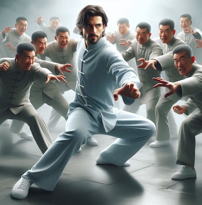 | Le 11 Mai : Je vais me coucher à 22H45 et je m'endors vite... R1 : Avec un générateur d'images je veux réaliser une scène représentant une femme en train de se laver. Mais le logiciel rejette ma demande. Mais pourquoi ? Je ne demande pas une image porno', je veux simplement obtenir une femme habillée qui se lave le visage avec un gant de toilette devant son lavabo ! Et ce genre de scène s'appelle une "trithérapie"... ... Je fais un micro réveil. Ca me donne le temps de vite mémoriser le rêve mais pas de l'écrire ni de noter l'heure. Je me rendors aussitôt... R2 : ... Je me demande pourquoi j'avais utilisé le mot "trithérapie". Quel rapport avec une femme dans une salle de bain ? Je réfléchis. "tri" signifie "trois". C'est peut-être parce que cette femme utilise trois choses : Un gant de toilette, un savon et de l'eau ? Ou alors un gant de toilette, un savon et une serviette ? Mais pourquoi "thérapie" ?... Je trouve d'autres explications tout aussi peu convaincantes. J'entends la voix d'un homme venant de gauche qui me dit : "Bon, je le retire ?" (Il veut retirer ce mot du scénario). Mais je continue à réfléchir et je remue plein d'hypothèse absurdes. La voix me dit alors : "Bon, je le remets ?"... mais je continue de réfléchir. Je pense à la vie des anciens amérindiens... Je me réveille. Il est 2H30. HH : Une voix de femme dit : "Il est 11 heures !" Il est 2H50 Dans la chambre d'à-côté j'entends un de mes chats qui "parle" en dormant. Il essaie de moduler de drôle de sons comme s'il voulait prononcer des mots : "Raon mraraou raou raou !". Je me rendors... R3 : Je suis avec une bande de jeunes dans un grand bâtiment abandonné. Nous sommes rassemblés devant un long escalier de bois, au-dessus d'une grande trappe, qui conduit à l'étage supérieur. Nous hésitons à monter tellement il fait noir. Je prête ma torche à un jeune qui projette sa lumière. On dirait que, à cet étage, il y a un autre escalier de bois pour monter encore plus haut. Tout le monde s'agglutine devant la trappe pour regarder mais sans oser monter. Pour m'amuser je pousse un petit cri bizarre pour faire croire qu'il y a une créature inconnue là-haut. Les jeunes se mettent alors à tous hurler de peur et ils s'enfuient dans tous les sens... (... Ellipse...) ... Une caméra était en marche et a filmé toute la scène. Nous repassons la vidéo. Je vois la fille blonde qui a été la première à hurler. Apparemment ce n'était pas mon cri mais quelque chose qu'elle avait vu en haut de l'escalier qui l'avait effrayée. Je ne sais plus que penser. Qu'avait-elle donc vu ?... (... Ellipse...) Une fille (la même ?) monte toute seule en haut pour enfin savoir ce qui s'y trouve. Elle est folle ? Moi je n'oserait pas. A bout de quelques secondes je l'entends hurler... puis c'est le silence, angoissant. Je monte l'escalier pour aller la secourir... mais je me rends compte que j'ai oublié ma torche alors je fais demi-tour. Je la recherche, je perds du temps, puis je la retrouve. Il me faudrait aussi mon arme, mais je n'ai plus le temps de la rechercher. Je prends alors un stylo sur une table, je m'en servirai comme d'un couteau pour le planter dans le ventre d'un éventuel assaillant. Et je monte les escaliers, peu confiant en ma capacité de me défendre tout seul avec un simple stylo. Et où sont les autres ? Pourquoi ne viennent-ils pas avec moi ? Ils n'ont pas entendu le hurlement ? J'arrive en haut mais je n'ose pas avancer plus loin. Je me contente de balayer la pièce avec la lumière de ma torche mais je ne vois rien. Je crie timidement : "Tu es où ? Tu es où ?"... Pas de réponse. La fille est-elle morte ou alors se cache-t-elle pour me faire une farce ? Et les autres, où sont-ils ? Se cachent-ils aussi pour me faire une farce ? Je fais demi-tour et redescend. Mais je me sans lâche. L'angoisse commence à faire apparaitre ma lucidité et celle-ci augmente lentement. Je décide d'agir directement sur le scénario de cette histoire : Je veux bien aller affronter l'ennemi inconnu mais je veux que ce soit en pleine lumière et pas dans le noir !... Tout devient confus et je me retrouve dans un vaste lieu bien éclairé. Je suppose que je suis à l'étage du haut. Je veux avancer pour chercher la fille mais une cinquantaine de Chinois arrivent pour me bloquer. Je veux forcer le passage... et c'est la bagarre. Ils cherchent à m'encercler pour m'attraper et moi je les repousse, les bouscule et essaie de passer. Je me sens très fort. Même si j'ai du mal à avancer, je m'amuse de leurs efforts dérisoires pour me capturer. Ma lucidité continue de progresser et je m'exclame : "Hi-hi ! C'est comme dans un rêve lucide !". Mais je suis trop concentré sur le combat pour avoir le temps de me demander si je rêve vraiment : Je fais très attention que les Chinois ne puissent pas m'encercler et je bouge sans cesse pour éviter que l'un d'eux puisse me ceinturer par derrière. Ils se mettent tous en position d'attaque de kung-fu. Je décide alors d'être un as du kung-fu. Ils se précipitent tous sur moi... mais moi je suis hyper-rapide et pare chacune de leurs attaques. Je suis de plus en plus fort et lucide et je leurs rends coup sur coup. Je les projette de plus en plus loin et même dans les airs (La scène ressemble à du Matrix mêlé d'Astérix).... Et je me réveille. Il est 4H50. Note : Je ne suis pas certain de pouvoir considérer R3 comme un vrai rêve lucide car j'y ai dit que c'était COMME un rêve lucide et pas que c'était un rêve lucide. Mais ma lucidité a augmenté continuellement et j'avais trop fort à faire dans la bagarre pour avoir le temps d'effectuer des tests de réalité.