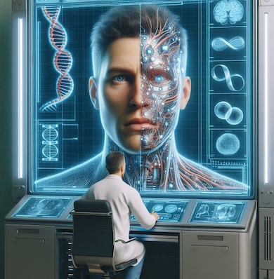| Le 25 Mai : Je me sens toujours malade. Je vais me coucher à 22H00 et m'endors vite... R1 : J'utilise un générateur d'images pour créer des photos d'hommes bizarres, inquiétants, ténébreux, hards, punks, etc... Je passe beaucoup de temps à faire et à refaire ces images (il me semble que je repasse plusieurs fois le même rêve). Puis je veux essayer de créer un personnage "psychédélique"... mais ça ne me plait pas car il n'a pas le même aspect "dur" que les autres... (... Ici il y a peut-être eu un micro-réveil...) ... Puis Tony (le copain de mon ex') vient se joindre à moi et lui montre mes créations. Je me dis que je pourrai proposer mes personnages générés à l'émission "Un visage, un vote, un président". C'est une émission dans laquelle on tente de créer une personne qui deviendra notre prochain président de la république. Je continue de créer des personnages et de faire des expériences. J'ai envie d'essayer de créer un homme dont l'ADN serait clivé... mais j'y renonce vite car je medoute que le générateur d'images ne comprendra pas ce que ca signifie. (...) R2 : J'ouvre une porte et j'entre dans une sirte de grande arène vide. C'est un lieu où il est possible de faire apparaitre toutes les images que l'on veut par la force de la pensée. Je suis accompagné de deux créatures de forme vaguement humanoïde, sans visage. L'un est de couleur vert pâle et symbolise les plantes. L'autre est de couleur beige et symbolise les champignons... ou les myxomycètes... j'hésite à me décider. Je leurs explique que je vais faire apparaitre des images illustrant l'histoire du développement des êtres vivants depuis l'apparition des eucaryotes, c'est à dire des cellules à noyau. Les premiers êtres à se différencier à partir des eucaryotes primitifs ont été les plantes. Ensuite les champignons se sont séparés des ancêtres des animaux. Je me réveille. Il est 4H55. Note : Encore des rêves assez confus dus probablement à de la fièvre. Note 2 : Dans RI j'avais écrit "J'ai envie d'essayer de créer un homme dont l'ADN serait clivé... " J'ai donc demandé à un générateur d'images du monde réel de l'afficher... et voila ce qu'il m'a sorti