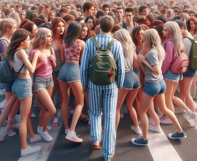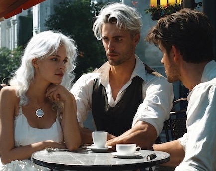 | Le 12 Mai : Je vais me coucher à 22H25 et je m'endors rapidement... R1 : Je suis assis avec de nombreux hommes et femmes en plein air sur des bancs grossiers en bois devant des tables longues grossières en bois. On nous apporte une caisse contenant des maillots de bain. Nous allons devoir, un à un, prendre un maillot dedans au hasard et l'enfiler. Sa couleur déterminera dans quelle équipe nous jouerons dans les épreuves sportives nautiques qui vont suivre. Je prends un maillot Bleu marine avec des motifs blancs et le donne à Tony (le copain de mon ex') qui est assis à ma droite. Il fait une drôle de tête. Je sais qu'il n'aime pas se promener en maillot de bain devant les gens. Puis j'en prends un pour moi. Il est bleu-vert pâle. Il n'y a pas de cabine pour nous isoler alors je dois me changer devant tout le monde. J'essaie de ne pas tout montrer aux deux femmes qui bavardent assises à ma gauche. Mais j'essaie aussi de ne pas me montrer exagérément pudique. J'aime bien ce maillot : Il est doux et confortable. Il est en une sorte de tissus-éponge extensible. J'ai de la chance car c'était le seul modèle de maillot dans cette matière... R2 : Je suis à table chez mes amis Xavier et Dany. Leur fils est là également. Ca faisait très longtemps que je ne l'avais pas vu (près de 30 ans IRL) mais il n'a pourtant presque pas changé. Je me souviens que la dernière fois que je l'avais vu, il faisait un caprice, pleurait et hurlait car Xavier voulait l'emmener en passant par une rue qu'il ne trouvait pas belle (Anecdote véridique IRL). Dany apporte un plat et le pose sur la table en disant : "Je n'ai pas demandé. C'est cassoulet !". Je réponds : "Pas de problème, j'aime le cassoulet !". Elle me dit que c'est à moi de le découper. C'est en effet une sorte de gâteau de cassoulet recouvert d'une croute épaisse. Je prends un couteau et... Soudain j'entends un petit bruit venant de gauche. Une sorte de bourdonnement. Il me semble avoir déjà entendu ce bruit quelque part (En fait, IRL, c'est le bruit des parasites que j'entends dans mon téléphone fixe quand je reçois un appel sur mon téléphone portable)... ... Et je me réveille. il est 3H50. HH1 : Une voix dit : "Du coup, dans cet hôtel, on a fait de la nourriture spéciale pour les touristes!" Il est 4H30. HH2 : Sur un navire, un capitaine charge un marin de tenir la barre pendant toute la nuit. Il est 4H45. Je me rendors... R3 : Je suis assis dans une sorte de classe d'école. Je regarde des images érotiques que j'ai découpées. L - - - - -, une femme avec qui je discute dans un forum, s'approche et prends des feuilles pour les regarder... Et elle se moque de moi. Je veux remettre de l'ordre dans mes feuilles mais je vois que certaines se sont transformées en plastique transparent sans aucune image dessus... Soudain je me souviens que je dois participer à une exposition collective de dessins. Je me téléporte vite dans ma ville. Je cours vers la salle des fête en tenant deux grands rouleaux contenant mes oeuvres. Je salue au passage le gros M - - - - qui garde l'entrée mais je n'ai pas le temps de lui parler car l'installation des oeuvres doit être terminée dans une heure au plus tard. J'entre et vois qu'il y a déjà des visiteurs. Je cherche où se trouve le panneau qui m'est réservé pour accrocher mes dessins. Mais je ne le trouve pas. On dirait que tous les panneaux sont occupés. je cherche... et je perds du temps. Ca m'énerve. J'ai bien envie de me téléporter directement dans le futur, jusqu'à l'instant où j'aurai terminé d'installer mes dessins... Et je me réveille. Il est 5H50. Je m'amuse à faire une rêverie pour connaitre la suite du rêve... Rêverie diurne enfoncée : Je suis toujours dans la salle d'exposition. je me dirige vers un groupe de femmes qui bavardent afin de leurs demander si elles savent où se trouve le panneau qui m'est réservé. Elles portent des robes courtes sans manches très colorée. Une des robes est violette, une autre est vert pomme, une autre peut-être bleue. L'une des femmes me fixe et me demande pourquoi c'est à elles que je m'adresse pour demander ça. Je lui répond du tac au tac : "Parce que vous êtres jolies !". Nous bavardons un peu ensembles et plaisantons. Les femmes sont d'accord pour m'aider à accrocher mes dessins. Mais, maintenant, tout ça m'ennuie, je n'ai plus envie de perdre mon temps avec mes dessins, j'ai juste envie de continuer à draguer ces femmes. Alors, pour aller plus vite, je claque des doigts et mes dessins vont s'accrocher touts seuls en un clin d'oeil. Les femmes sont impressionnées par mes pouvoirs... Il est 6H15. Note : Dans R3 je peux me téléporter aussi bien dans l'espace que dans le temps et ça me parait naturel. Je me comporte comme si je me savais en train de rêver, pourtant je n'ai pas l'impression d'être lucide. Ca arrive de plus en plus souvent dans mes rêves. Note 2 : je ne sais pas que penser de ma rêverie diurne. Ce n'était pas un rêve lucide car j'étais bien éveillé, pourtant je me sentais "embarqué" comme dans un rêve ou une HH. Comme je venais juste de me réveiller j'étais peut-être encore un peu dans la phase et dans un état intermédiaire entre une rêverie et une HH ? Il faudrait que je vérifie si je sais faire ça aussi en plein milieu de la journée. Jusqu'à maintenant toutes les rêveries "enfoncées" que j'ai faites avaient lieu peu après mon réveil). -