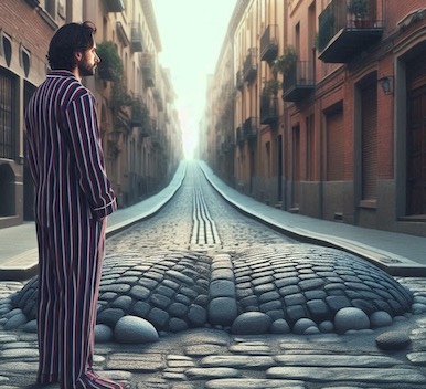 | Le 24 Juin : Je vais me coucher à 22H40 et je m'endors rapidement... R1: Rêve dont le contenu a vite été oublié. J'ai l'impression qu'il était rempli plus de pensées que d'images (Sommeil lent ?). Je me réveille en passant par une hallucination hypnopompique... HH1 : Je vois une lueur rouge clignotante qui semble filtrer à travers les volets... Je me lève pour vérifier si cette lueur ne vient pas d'un incendie... Mais je ne vois rien. Il est 23H25. Je me rendors... R2 : Encore un rêve que je n'ai pas pu mémoriser. Je sais seulement que la banque y avait transféré une somme d'argent sur mon compte... Je me réveille. Il est 2H15. Je repense à cet argent reçu dans mon rêve... HH2 : Je suis en train d'écrire une lettre à mon ouvrier pour l'informer que j'ai reçu les fonds nécessaires pour la poursuite des travaux. Il est 2H30. Comme je constate que mes pensées semblent se transformer facilement en HH, j'essaie de penser à ce à quoi je voudrais rêver... Je repense au yacht de Pamela Anderson que je voyais jadis en rêve... Puis je me souviens d'un rêve où Pamela était la capitaine d'un groupe d'amazones pirates... Puis j'imagine ces amazones faisant du sport dans une grande ville moderne... Et je m'endors... R3 : Je me promène avec une amie dans une grande ville moderne. Devant nous il y a une zone réservée aux voitures. Je vois un jeune homme aux cheveux blonds assez longs portant un long manteau noir qui fait du skateboard d'un air nonchalant. Je sais que c'est une sorte de militant écologiste. Il zigzague au milieu de la route et fait exprès de brusques écarts devant les voitures pour emmerder les automobilistes. C'est sa façon de protester contre les automobiles qui accaparent de plus en plus de place dans la ville. Je l'admire et lui fais un signe de la main pour lui signifier mon soutient. J'ai même bien envie de faire comme lui. D'ailleurs j'ai justement un skateboard entre mes mains... (... Petit passage non mémorisé...) ... Avec mon amie nous sommes dans la zone interdite aux piétons et nous traversons une route en courant car les voitures sont nombreuses et foncent sans s'arrêter. Je crie : "On ne peut rien faire ici !" car ça m'énerve que l'on interdise aux piétons de venir ici. Arrivés de l'autre côté je vois, entre les maisons et une file de peuplier, un sentier goudronné un peu en contrebas. Dessus court une femme brune en survêtements blancs et roses qui fait son jogging avec son grand chien danois. Derrière, au loin, je vois arriver un autobus. Et je comprends le drame quie st en train de se nouer : Cette joggeuse est en train de courir par erreur dans un couloir de bus. Et le bus va la percuter car elle n'a pas de place pour se mettre sur le côté. Je comprends pourquoi cette zone était interdite aux piétons. la femme a compris le danger car elle court de plus en plus vite... Je me demande comment la sauver... et j'entre en lucidité implicite. Je sens au fond de moi que j'ai la possibilité de m'octroyer tous les pouvoirs que je veux dans ce scénario. Je décide de m'envoler et de passer au-dessus du chien pour le saisir au passage afin d'aller le mettre en sécurité plus loin. Mais aurais-je le temps de faire la même chose avec la joggeuse ?...