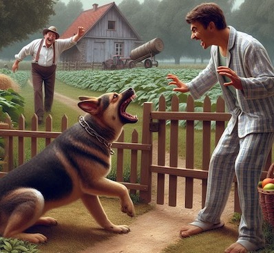 | Le 29 Juin : Je vais me coucher à 22H20 et je m'endors rapidement... R1 : J'ai oublié le début du rêve et j'ignore à quel moment je suis devenu lucide... ... Je suis entré dans une pièce ronde de taille moyenne dont les détails sont indistincts (Comme dans tous les rêves de début de nuit). Je semble flotter un peu comme si j'étais sous l'eau. Une sorte de grande pièce de tissus fin de couleur beige-orangée est étalée sur le sol et semble animée d'une vie propre. On dirait qu'elle est éclairée par en-dessous et elle commence à s'élever dans les airs en flottant. Puis elle se met à tourner de plus en plus vite comme si elle était une créature vivante cherchant une issue pour s'enfuir. Elle s'enroule sur elle même... puis autour d'une sorte de colonne lumineuse qui est apparue au centre de la pièce. C'est très beau à voir à cause des jeux de lumières colorées à travers le tissus fin. Je me dis que ce rêve contient de très beaux effets de lumières et j'espère que je le mémoriserai. Je décide finalement de vite me réveiller pour ne pas risquer de l'oublier et pour pouvoir en noter tous les détails... ... Et je me réveille. Drôle de rêve où ce n'est que ma remarque finale qui prouve que j'étais lucide. Il n'est que minuit. Je me rendors... R2 : ... Je ne me souviens plus du début du rêve. Il me semble que je discutait avec des gens et puis je suis parti... Et me voilà en train de marcher en pleine campagne alors qu'il est tard le soir. Je me retourne et je vois, au loin, un homme en compagnie d'un gros chien. Ce dernier me voit et court dans ma direction. Il a l'air méchant alors je me protège en tendant devant moi un objet indéfini que je tiens dans mes mains. Le chiens s'immobilise devant moi et se contente d'aboyer en montrant ses dents d'un air menaçant. Son maitre nous rejoin t et m'explique que son chien n'aime pas les gens qui montrent qu'ils ont peur de lui. Il me demande ce que j'ai mangé à midi.surpris je lui réponds : "Heu... de la vian de de cheval !". Il dit en ricanant : "Et bien lui aussi il veut manger son midi !". Je comprends que ça signifie que son chien me dévorerait volontier. L'homme ouvre une petite grille et s'engage sur un petit sentier menant à sa maison. Je fais demi-tour pour partir... Aussitôt le chien revient en courant vers moi. Je me retourne pour lui faire face alors il s'arrète et se contente d'aboyer furieusement contre moi. Je comprends qu'il veut que je reste là et qu'il m'attaquera si jamais je me retourne pour partir. Je reste donc de face et j'essaie de ne pas lui montrer ma peur. L'homme me dit : "Ha, il ne vous lâchera pas !"... Puis il ricane et ajoute : "Vous risquez de rester là toute la nuit !". Je lui crie : "Ho ! Vous pourriez m'aider au moins !"... mais il repart vers sa maison en riant. Quel sale type, il mériterait que je tue son chien, ça lui apprendrait ! Mais ce serait indigne de moi de faire ça. Le chien est toujours là devant moi et grogne d'un air menaçant. Que faire pour me débarrasser de lui ?... Soudain une idée apparait dans mon esprit : Il me semble que je dispose de tous les pouvoirs des rêveurs lucides, non ?... ... Mais je me réveille juste avant d'avoir eu le temps de faire un test de lucidité. Merde, j'allais devenir lucide ! Il est 3H25... HH1 : Je suis dans ma cave et je discute avec une femme. J'entends mon téléphone sonner en haut alors je remonte les escaliers... J'enchaine immédiatement sur une autre HH sans avoir le temps de noter l'heure... HH2 : Un homme me parle des syndicats. Il me dit : "... Eux appliquent les lois que le patronat a inventées !" Il est 4H00. HH3 : Je regarde une BD. Sur les premières images on voit un homme monté sur un poteau. Deux jeunes sont montés sur un autre. L'homme leurs raconte une histoire interminable et ennuyeuse. L'image suivante est très grande. C'est un grand angle qui montre la situation globale en effectuant un zoom arrière. On voit les trois personnages sur leurs poteaux et, en dessous d'eux, est lové un immense dragon qui semble sommeiller. Il est 4H10. Je me rendors... R3 : Je discute avec des gens puis je me sépare d'eux.J'en tends mon portable qui sonne. Je décroche et j'entends une voix de femme qui dit : "Ou es-tu ma chère soeur ? Ou es-tu, vas-tu répondre ?". Je comprends que c'est la soeur de la femme décédée dont j'ai hérité du numéro de téléphone portable. Elle a pris l'habitude d'envoyer des sms à ce numéro pour faire comme si elle communiquait toujours avec sa soeur dont elle ne digère pas la mort (Cette situation est exacte IRL). Mais cette fois c'est un appel vocal qu'elle effectue et non un sms. Elle dit ensuite, s'adressant à moi personnellement : "Vous savez, vous pouvez me répondre !" J'entends mal ce qu'elle dit mais il me semble comprendre qu'elle ajoute : "Vous m'invitez au restaurant ?". Voudrait-elle me draguer ? Je me réveille. Il est 6H00. Note : Le rêve R1 est spécial. Pendant toute sa durée je n'avais pas le moindre indice montrant que j'étais lucide. Et pourtant à la fin je me comportai comme s'il était évident que je savais depuis le début que j'étais dans un rêve. Ca confirme ce que je soupçonnait depuis longtemps : Je fais souvent des rêves dans lesquels je sais (implicitement ?) que je rêve mais sans me focaliser sur ce détail car il me parait évident et sans intérêt. Et ce n'est que si le rêve devient intéressant à mémoriser (exemple : R1) ou désagréable (Exemple : R2) que je réagis en me focalisant sur ma lucidité. D'ailleurs dans R2 j'ai failli devenir explicitement lucide à la fin. Une seconde de plus et j'aurais déclarait que je savais être dans un rêve. J'ai préféré ne pas ranger ce rêve dans les rêve lucides car ma lucidité n'était pas encore assez certaine à la fin. PS : Ca fait ma 3ème lucidité en trois jours
