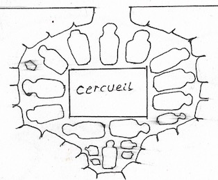 - R6 : Je lis un gros livre d'archéologie que je viens d'acheter et j'en compare les illustrations avec celles d'un autre gros livre que je possédais. Certaines pages donnent les traductions de divers hiéroglyphes hittites. D'autres pages affichent les plans en coupes de plusieurs tombes royales hittites. Elles sont toutes à peu prés du même modèle : Une fosse contenant un cercueil royal entouré de toute part par des statues en or. Quel gaspillage d'or !