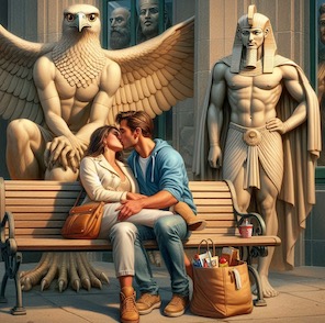 | Le 3 Juillet : Je vais me coucher à 22H20 et je m'endors rapidement... R1 : Rêve oublié. (...) R2 : Rêve oublié. (...) R3 : Je suis en train d'observer un homme et une femme qui s'embrassent tendrement. Apparemment je suis invisible car ils ne semblent pas remarquer ma présence. Ou alors cet homme n'est autre que moi même et la femme est Johanne ? Je les vois qui s'excitent peu à peu et ça me fait penser. Je me demande si nous sommes vraiment obligés de nous laisser ainsi entrainer par nos instincts. N'est-ce pas là une forme d'esclavage ?... Je me réveille. Il est 3H00. Je mémorise le rêve R1...et je l'oublie aussitôt. Je mémorise le rêve R2... et je l'oublie aussitôt. Soudain le rêve R3 me revient en mémoire comme pour les remplacer. Puis je me rendors... R4 : Je repense au rêve avec le couple enlacé. J'estime que ce n'était qu'une ébauche et que je pourrai faire mieux.Plutôt que de rester chez moi à m'ennuyer ce dimanche après-midi, je vais plutôt aller en ville pour y créer une version plus aboutie de ce rêve (afin de la photographier ?). Je sors et me rends à l'arrêt de bus. J'y rencontre mon ex' qui est avec son nouveau petit ami. Elle m'explique qu'elle aussi va en ville car elle a l'intention d'aller visiter une exposition. Je lui raconte mon projet. Puis je réfléchis, me demandant comment je vais le réaliser. On est dimanche après-midi donc les rues de la ville vont être à peu près désertes, c'est bien pratique car ainsi je pourrai oeuvrer tranquillement. J'installerai le couple sur un banc public. Je décide qu'ils représenteront deux divinités égyptiennes. Hmmm.. Mais ça va compliquer les choses, ça. Alors ils seront de simples humains normaux mais le dieu Horus sera derrière le banc en train de les observer. Et un peu plus loin il y aura un autre dieu égyptien... peut-être Osiris... Je me réveille. Il est 5H00. Je me rendors... R5 : Je repense au rêve précédent (peut-être suis-je en sommeil lent). J'ai envie d'en créer un autre de type encore plus fantastique. Je réfléchis à un scénario tout en projetant des images... Je suis devenu le gardien d'une sorte de talisman ultra-puissant d'origine extraterrestre. Mais des "ennemis" cagoulés armés de pistolets mitrailleurs surgissent et veulent s'en emparer. J'avale l'objet qui se loge dans ma gorge puis je l'active par une impulsion mentale.Il en sort alors un puissant rayon de lumière colique dirigé vers le haut qui enveloppe ma tête. C'est le terrible "cône de force israélien" !... Heu non, je retire l'adjectif "israélien" car ça fait ridicule : C'est seulement le terrible "cône de force" ! Mon corps se met alors à léviter à quelques centimètres au-dessus du sol. Les "ennemis" me tirent dessus, criblant mon ventre de balles. Mais ma vie n'a aucune importance, seul le talisman en a une. Mon corps est détruit mais ma tête protégée par le cône de force est devenue indestructible et immortelle. D'ailleurs mon corps est devenu tout desséché et noirci car le talisman en a aspiré toute l'énergie vitale pour s'en charger. Il est maintenant prêt à contrattaquer et à désintégrer ces ennemis imprudents qui s'imaginent capables de se mesurer à lui... Et je me réveille. Il est 6H30. Note : Le rêve R5 (et même un peu le rêve R4) est d'un type spécial. Je me comporte comme si je savais que ce que j'avais vécu auparavant était un rêve et que je voulais en créer un autre. Mon état n'est pas clair. Peut-être suis-je en sommeil lent et que je réfléchis pour créer un nouveau rêve pour la prochaine phase de sommeil REM qui arrive ? Ou alors je me crois éveillé (faux-éveil) et en train de faire une rêverie ? Ou alors je suis dans un rêve en lucidité implicite et je m'amuse à manipuler le scénario onirique ?