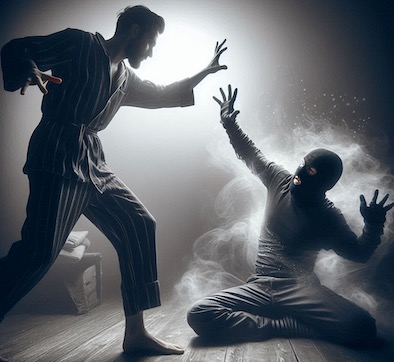 | Le 9 Juillet : Je vais me coucher à 22H10 et je m'endors vite... R1 : Je suis peut-être en sommeil lent car mon rêve ressemble plus à des pensées qu'à une scène immersive... "On" me racontre qu'un homme s'est infiltré dans une secte pour l'espionner mais qu'il s'y est laissé endoctriner... Une dame m'explique de façon naïve comment font les faux gourous pour endoctriner les gens. (...) R2 : Ce rêve ressemble plus à des pensées et des rêveries de sommeil lent qu'à un vrai rêve... J'imagine une histoire... Deux bandits se sont introduit chez moi et m'ont ligoté. L'en d'eux veut v.... ma compagne. Je me dis que je pourrais essayer d'utiliser les pouvoirs dont je dispose dans les rêves lucides. Peut-être que ça marcherait même si je suis dans le monde réel. Je claque des doigts... et l'un des bandits se retrouve paralysé. Je claque des doigts et celui qui agressait ma campagne se trouve paralysé également. Je tends ma main vers lui et claque des doigts de l'autre main et le voilà agité de violents tremblements et se met à hurler, en proie à une terrible douleur dans son torse. J'attends un peu puis je fais cesser son tourment. Je claque ensuite à nouveau des doigts et voilà qu'il ne peut plus respirer. Je claque des doigts et la même chose arrive à son complice. Je les laisse suffoquer ainsi pendant quelques temps puis je les laisse reprendre leur souffle. Et je leurs fais remarquer que j'aurai pu les laisser mourir si je l'avais voulu. Ils se mettent à genoux devant moi et crient "pitié, me suppliant de les épargner. R3 : Un homme assez âgé m'explique de manière naïve comment font les hommes politiques pour nous manipuler. Il fait de la main le geste d'une tenaille se refermant sur nous et dit : "Ils disent de belles paroles pour nous embobiner !" Je me réveille. Il est 2H45. HH : Une voix m'explique : "Dans ce magasin on peut acheter des xxxxx avec la possibilité d'avoir une AOU !"... Je sais qu'une "AOU" est une corde spéciale pour le tir à la corde. Il est 4H45. Note : Cette nuit j'ai eu l'impression d'être bien plus souvent en sommeil lent qu'en sommeil rem.