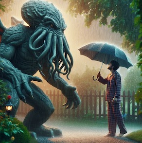 | Le 16 Juillet : Je prends du Hericium,vais me coucher à 22H25 et m'endors vite... R1 : Je me promène la nuit en tenant une lanterne et des cassette VHS contenant des enregistrements de mes rêves que j'essaie de vendre aux gens.Bien que n'ayant pas beaucoup d'argent j'ai pu négocier l'enregistrement de ces rêves pour pas trop cher. Je me réveille. Il est 00H05. Je me rendors. R2 : Je suis probablement en sommeillent et je laisse vagabonder mes pensées. Je vois défiler diverses images et soudain j'en reconnais une qui est tirée de mon rêve précédent. L'image est verticale et je m'y vois à la 3ème personne tenant mes cassettes VHS à vendre. Je me trouve grand et maigre. Ca me donne envie de repenser à ce rêve et à l'étudier... (...) R3 : J'étais en train de discuter dans mon jardin avec Cthulu, la créature à tête de pieuvre des oeuvres du romancier Lovecraft. Mais ila commencé à pleuvoir et Cthulu a disparu. Je me retrouve seul et tout étonné : Comment est-il possible qu'une créature de la mer comme lui puisse craindre la pluie ? Mais celle-ci s'intensifie rapidement et se transforme en un véritable déluge, m'obligeant à me réfugier dans ma maison. Je m'installe à ma fenêtre pour regarder si Cthulu revient. Il se fait tard et j'ai bien envie de fermer le volet mais si je n'attends pas son retour Cthulu risque de se fâcher. Je sais que ce genre de créature est très susceptible. Je prends conscience combien fréquenter des créatures démoniaques peut représenter un gros danger pour moi. Je me sens inquiet et je me retourne pour voir s'il n'y en a pas derrière moi. Je me réveille. Il est 2H45. Je me rendors. R4 : Je me suis procuré du matériel pour reproduire des photos de mes rêves précédents (Ceux où je vendais des cassettes VHS de mes rêves). J'ai du papier photosensible et du liquide révélateur, ça devrait suffire. Quelqu'un me fait remarquer que je n'utilise pas beaucoup de lumière pour exposer mes photos. Je réfléchis... Dans le premier rêve (R1) scène se passait pendant la nuit... donc pas besoin de beaucoup de lumière. Et dans le 2ème rêve (R2) je voyais une photo qui était plutôt pâle... donc idem. Je me réveille en traversant une hallucination hypnopompique... HH1 : J'entends une trompette qui joue un air d'allure mexicaine. Il est 5H00. HH2 : Une voix raconte : "Pendant le conflit des six jours, des maisons avaient été enterrées avec les victimes." Il est 5H30. Note : HH2 se rapportait visiblement à la situation au proche-orient.