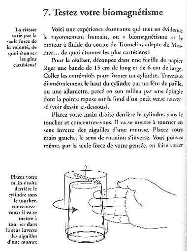 | Le moteur à fluide de Tromelin est un cylindre de papier que l'on peut faire tourner, parrait-il, par la force de la pensée :
