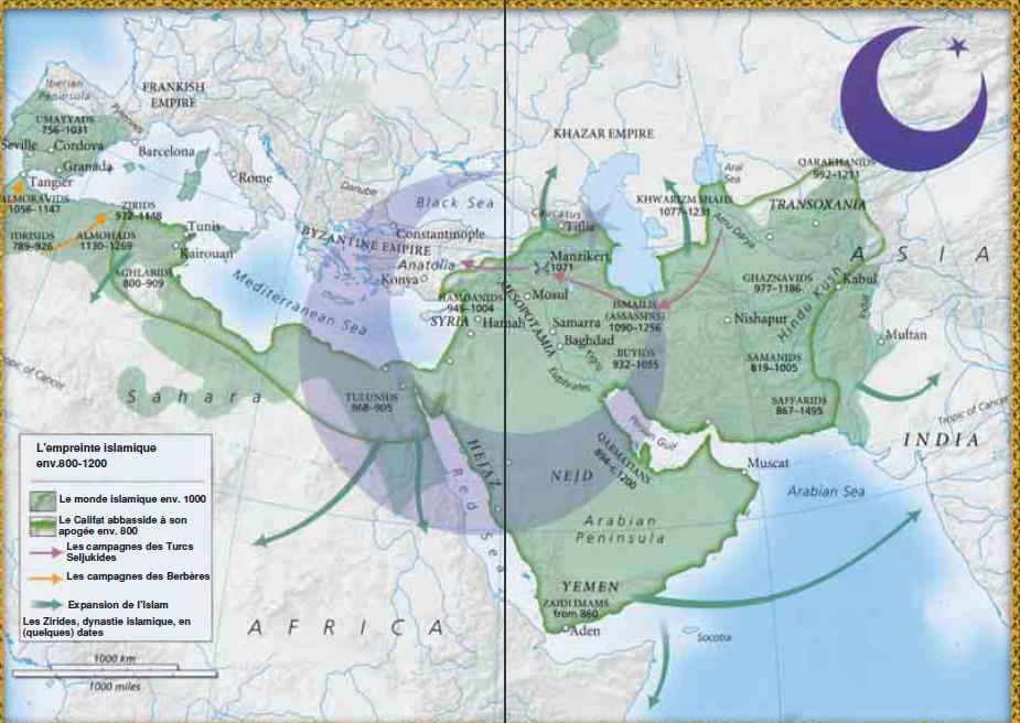 Les conquêtes sanglantes qui se sont succédées à l'époque de Mahomet puis sous le règne des quatre califes "les guides" ont contribué à l'expansion du monde islamique et de nombreux pays se sont retrouvé unis sous le drapeau de l'Islam.