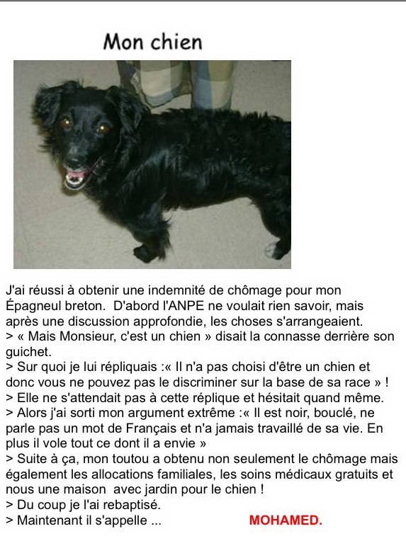 | | Ca fait des années qu'un texte de ce genre circule. |