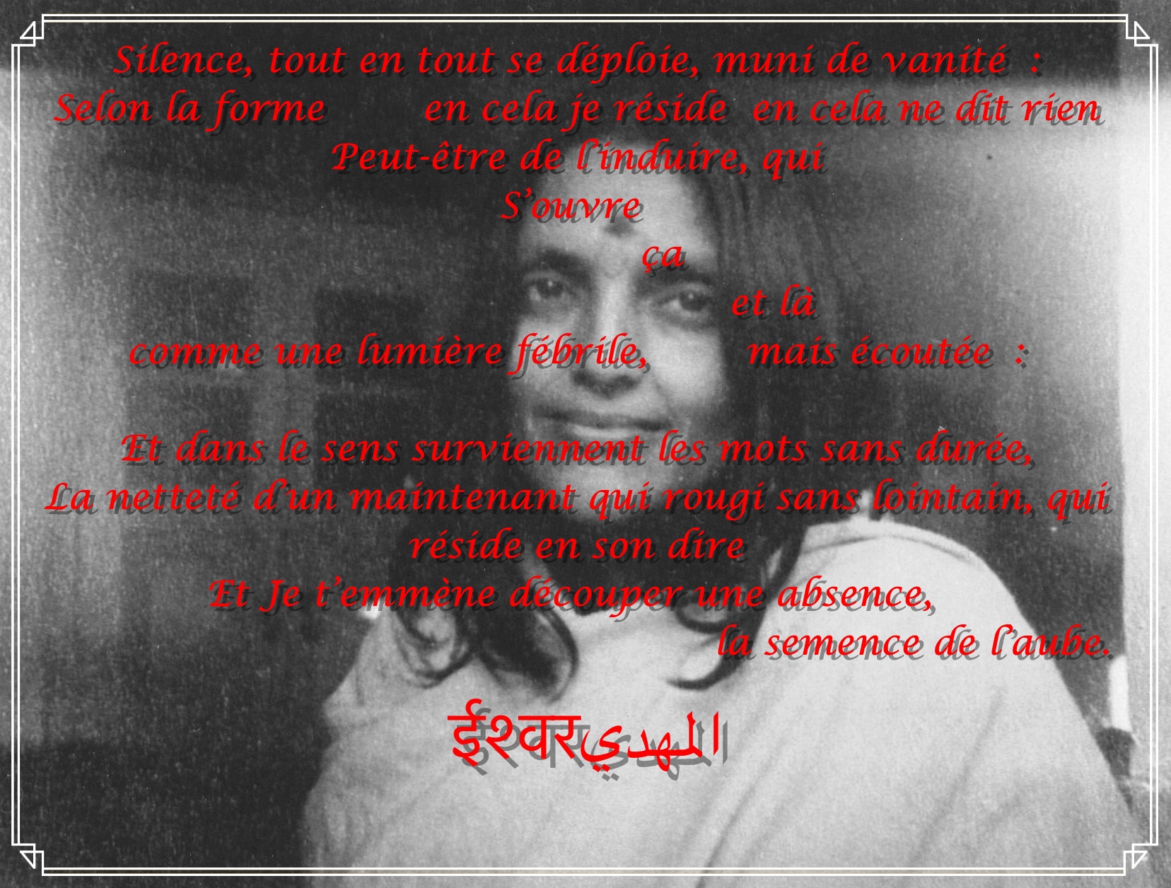 | Le décret de l’aube, genèse du verbe, Ici essaimage de l’oubli : Un espace agile sur les herbes, D’études la part d’inassouvi.