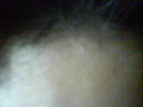 | Merci Atil. .C'est pas très distinct... C'est le rond blanc que l'on perçoit, juste avant le début des cheveux.. (Je n'ai pas d'appareil suffisamment perfectionnée, pour que l'on voit le creux) Donc à cet emplacement, il y a moins de dix jours, il n'y avait rien, ni blanc, ni creux... D'où mes questions..